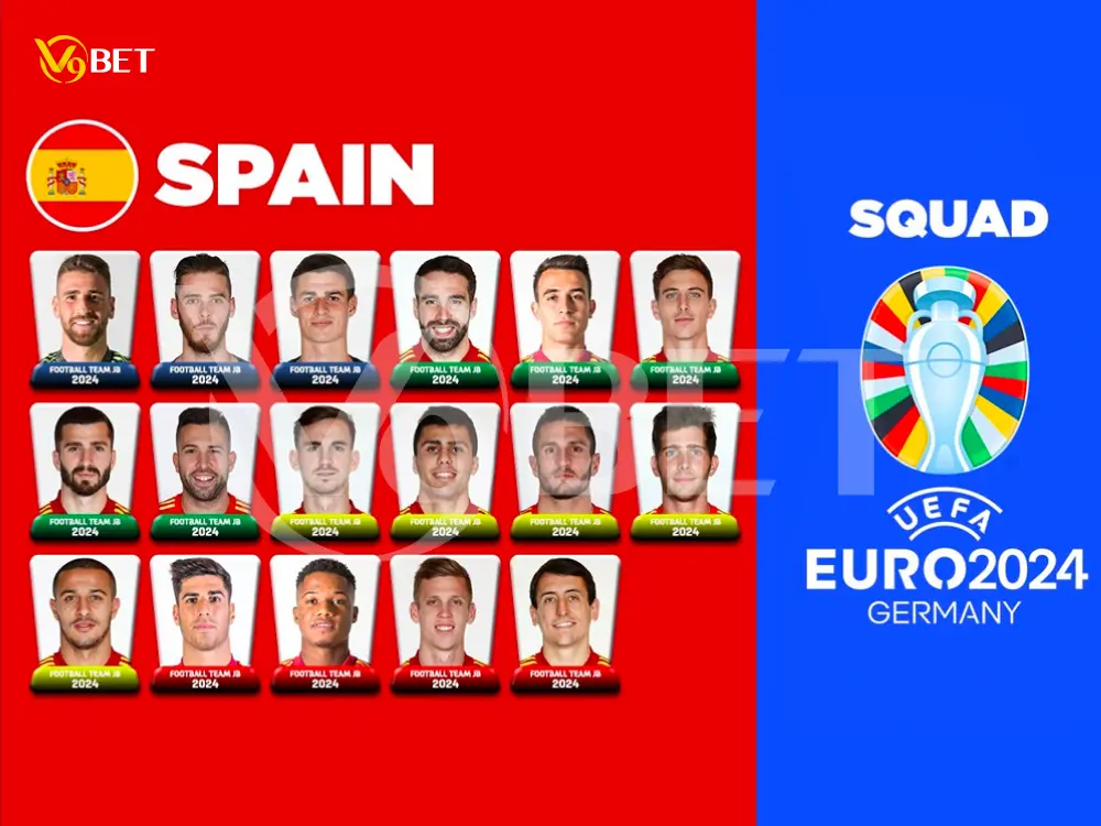Spain's Euro 2024 lineup features many young players with a fresh football philosophy introduced by De la Fuente. Discover the La Roja roster with V9Bet.