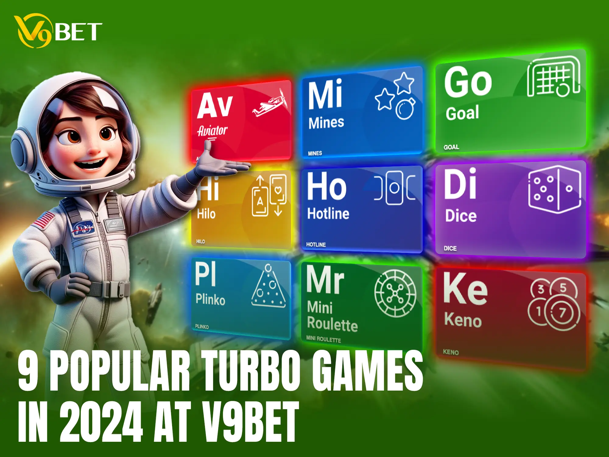Hiện có 9 game nhanh thịnh hành tại V9Bet phải kể đến là: Tỷ phú bay, dò mìn, ghi bàn, HILO, đường lửa, xúc xắc, Keno, Mini roulette và thả bóng zíc zắc.