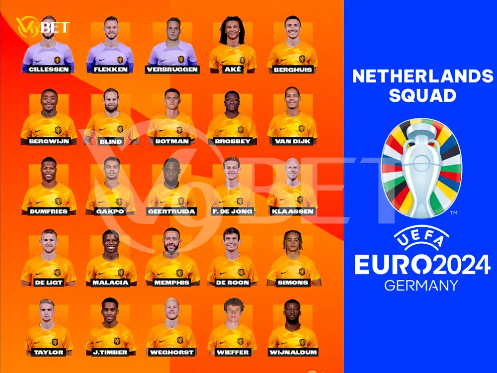 Đội hình Hà Lan Euro 2024 gồm có những ngôi sao sáng giá nhất đang thi đấu cho rất nhiều câu lạc bộ nổi tiếng. Cùng V9Bet tìm hiểu về đội hình Hà Lan nhé.